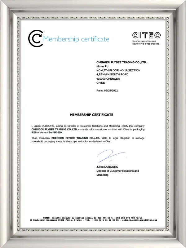 Los productos principales de APIBUZZ están registrados en el registro nacional de exportaciones de no pesticidas. Asegúrese de que cumplan con los requisitos reglamentarios para la exportación. Para mejorar la escala del comercio internacional y ampliar el efecto de la marca global, Chengdu Flybee ha sido proactivo en el registro de productos en los ministerios de agricultura de varios países. Por ejemplo, algunos productos ya se han registrado con éxito en Azerbaiyán. Esto significa que cumplimos con los estándares agrícolas locales y que los productos están autorizados para su comercialización legal en la región.